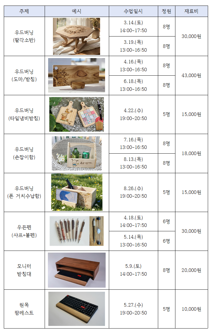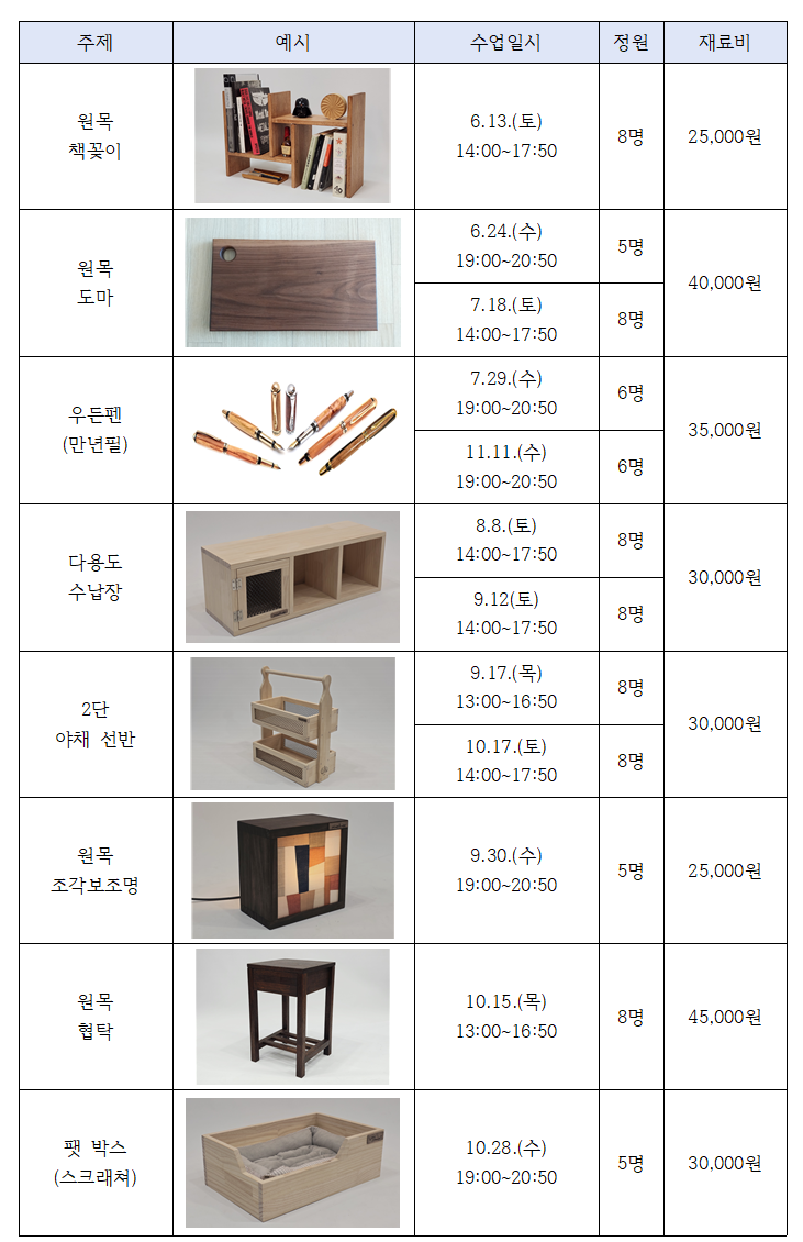 2026년 화성시생활문화센터 목공DIY스튜디오 기획 프로그램