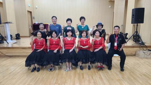 우리 모임은 시니어들의 건강과 화목을 위하여 음악을 동반한 율동을 함으로서 심신의 평화를 도모하는데 그 목적이 있으며 평균 연령 65세 인원은 30