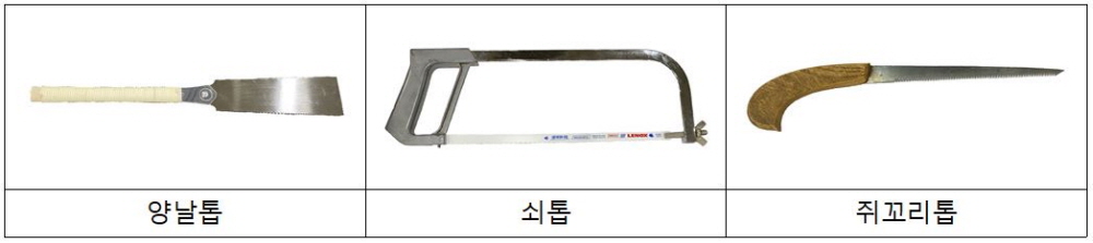 - 쇠톱 : ㄷ자 모양의 틀에 톱날을 고정해서 사용하며 주로 금속을 자를 때 사용된다.